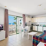 Strandfaciliteter i Club Tarahal Lejlighed ferielejlighed omfatter solsenge og parasoller.